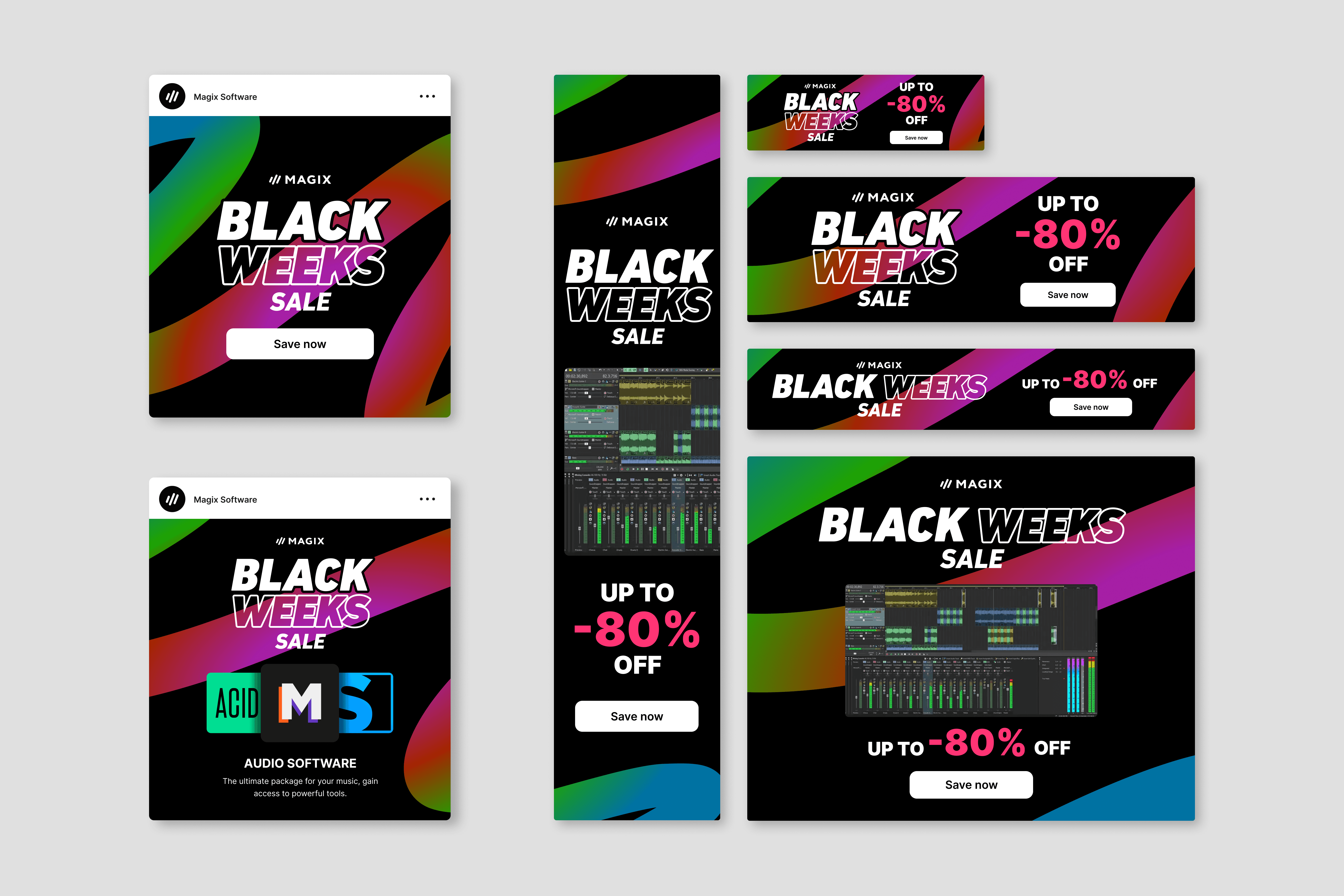 For major version releases, a dedicated visual exploration phase defined the tone of each launch. This example reflects the most recent Music Maker release, establishing color logic, motion cues, typography hierarchy, and key visuals that later scaled across web, social, email, and paid channels.