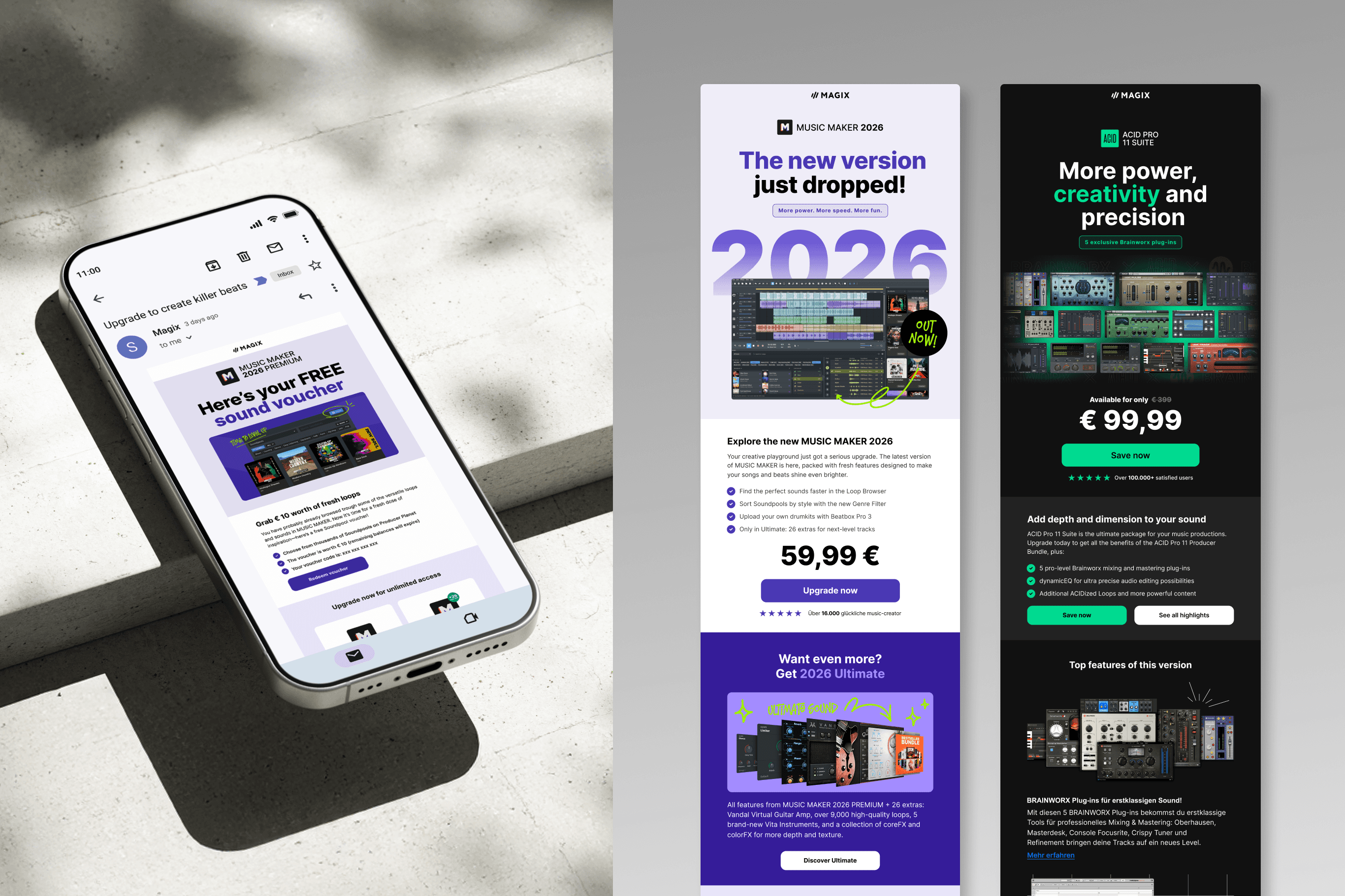 At MAGIX, I worked across two flagship audio products: Music Maker and ACID Pro 11. Both targeted different audiences but required a unified digital and commercial system across web, content, and sales channels.